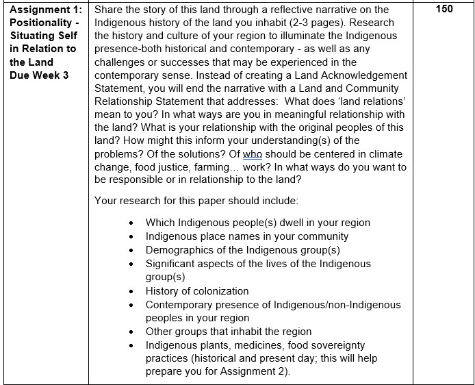 Week 3: Indigenous Worldviews and Land/Food Relations