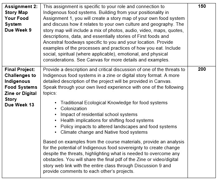 - Understand an Indigenized, socio-history of Indigenous Food Systems.